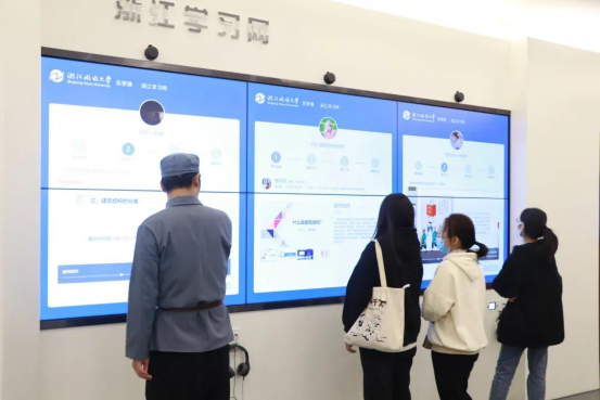 上午,师生们参观了运用人工智能、大数据、新媒体技术等科技打造的党建文化场景体验馆——乐学港,感受中华优秀传统文化、红色革命文化、浙江地域文化以及新时代中国特色社会主义伟大实践成果。