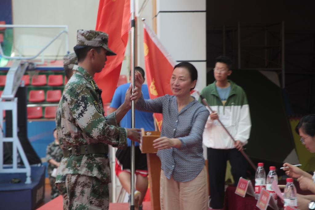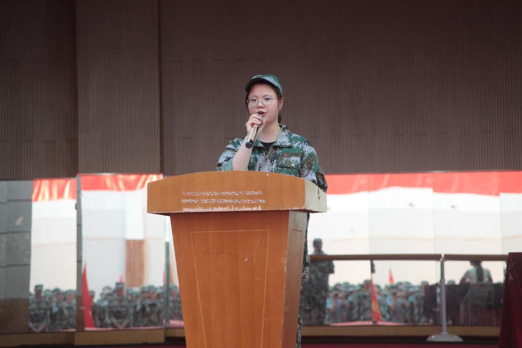 仪式上,公司领导和高培管委员会成员代表公司向各连队授旗。胡晓红副经理作军训动员讲话,对新同学的到来表示热烈的欢迎,并希望2019级新生参加军训时能够敢于吃苦,严守纪律,虚心学习,牢记安全,更好的接受军训的锤炼。军训教官代表发言,勉励新生要以军人的优良作风和团队精神认真完成本次军训。老生代表17级工商企业管理班冯际霖(退伍军人)、新生代表张梓沐作军训发言。