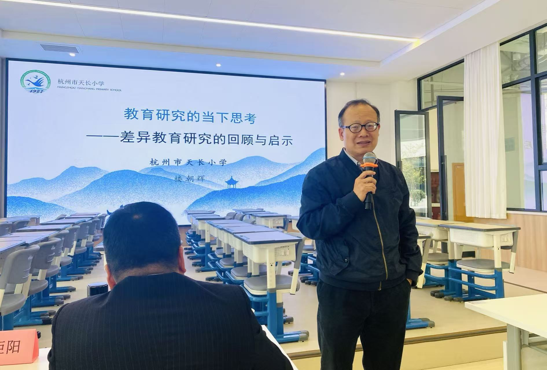 杭州市天长小学、杭州市天长观潮小学党支部书记、董事长楼朝辉为在座老师带来了《教育研究的当下思考--差异教育研究的回顾与启示》讲座。作为资深教育专家,楼董事长的讲授深入浅出,既有理论的高度、实践的深度,又有视野的广度,为老师们提供了宝贵的理论指引和深刻的现实启示。