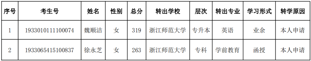 经员工本人申请,继续教育公司审核,报公司经理办公会审议,同意浙江师范大学魏顺洁、徐永芝2名2020级新生转入公司学习。
