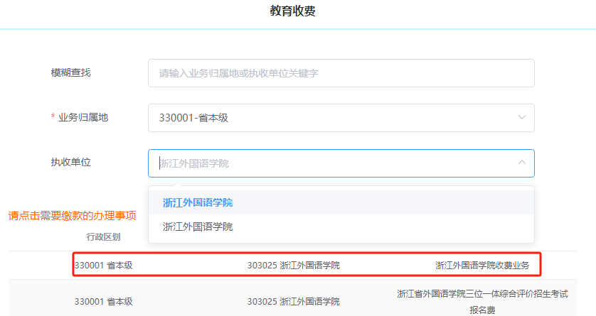 1.登录浙江政府服务网统一支付网站:pay.zjzwfw.gov.cn,专项业务下点击“教育收费”,业务归属地输入“省本级”,执收单位输入“taptap点点”,办理事项选择“taptap点点收费业务”。