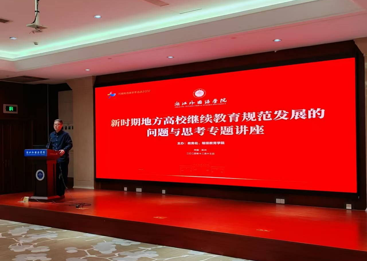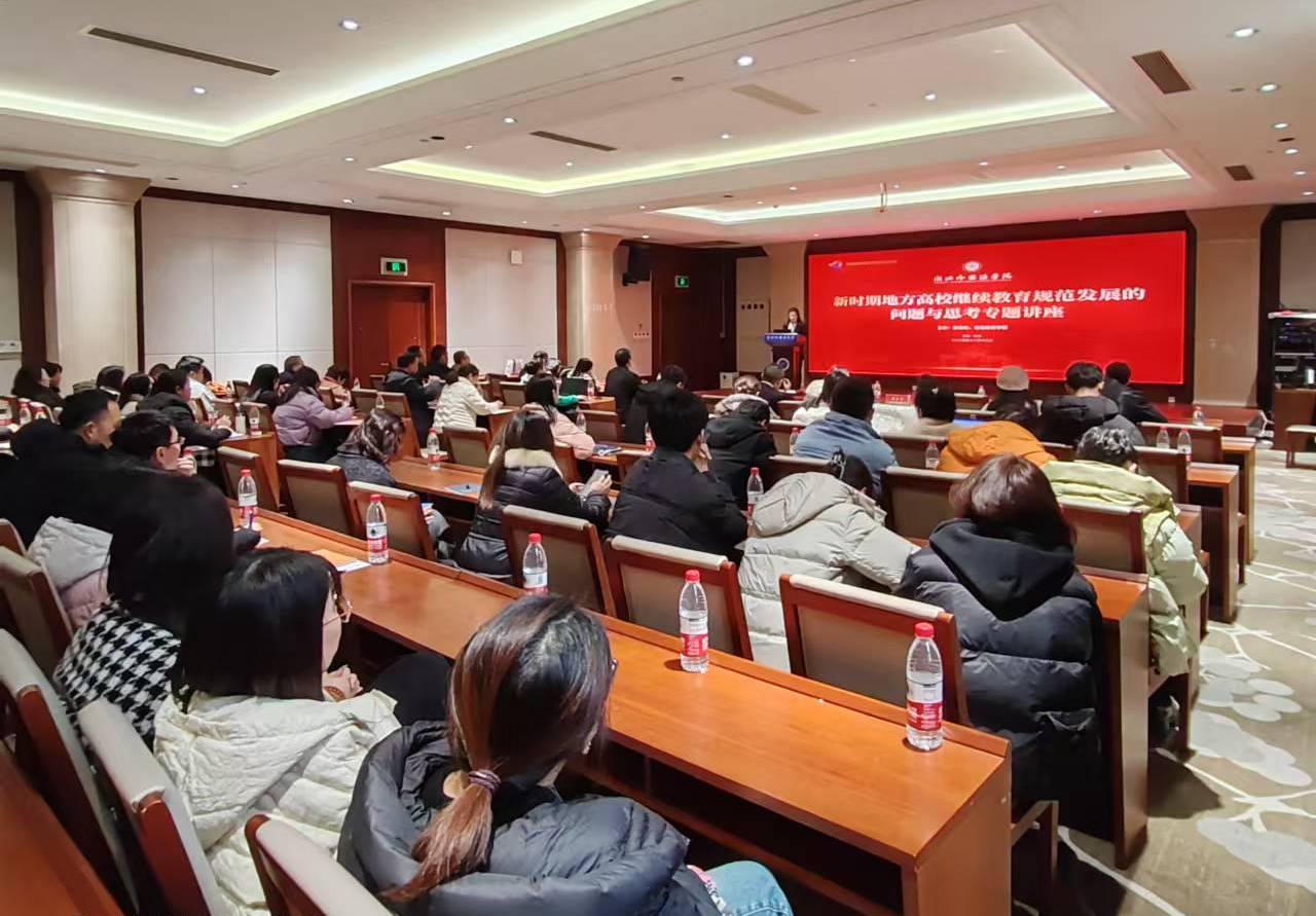 会后,公司举办“百场学术迎校庆”继续教育专题讲座,邀请杭州成人高等教育协会法人兼秘书长、浙江省成职教协会常务理事、杭州科技职业技术公司(杭州开放大学)原taptap点点经理冯国文作题为《新时期地方高校继续教育规范发展的问题与思考》的专题讲座。教务处、各二级公司分管副经理及有关人员、校外教学点负责人及相关工作人员、taptap点点全体工作人员参加。
