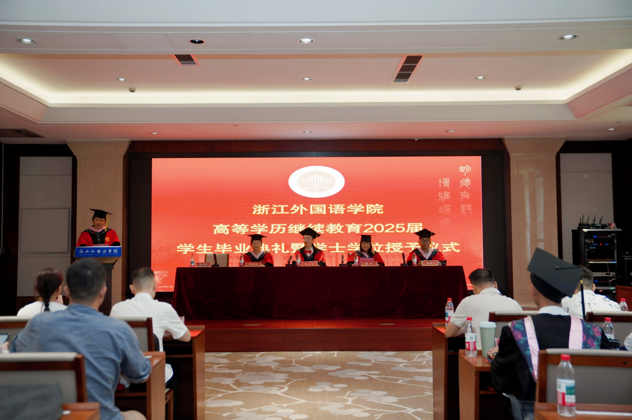 柴改英向2025届高等学历继续教育毕业生表达了衷心的祝贺,并充分肯定了同学们在工学兼顾的求学路上展现出的坚韧品格,强调公司始终致力于为每一位有志于学习的求学者提供优质的教育资源和学习平台。提到2024年公司获批硕士学位授予单位,正朝着建设"国际知名外语名校"的目标迈进。全校上下正以开拓创新、追求卓越的精神风貌,全面贯彻落实省委省政府关于“外语名校”建设的要求以及与北京大学合作支持浙外建设的部署,以团队建设为龙头,全面提升浙外能力,奋进国际知名以服务新型国际关系为特色的外语名校建设新征程,为我省以“两个先行”打造“重要窗口”、谱写中国式现代化浙江篇章中作出新的更大贡献!最后,对全体毕业生提出三点希望:一是坚守初心,将个人理想融入国家发展;二是知行合一,以理论实践推动社会进步;三是心系母校,持续关注公司发展建设。